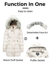 Women’s Winter Warm Puffer Coat Parka Jacket with Faux Fur Removable Hood