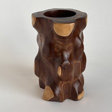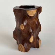 Wood Pot Pencil Or Paint Brush Holder 6.5” Tall Rustic Woods Cabin Cottagecore