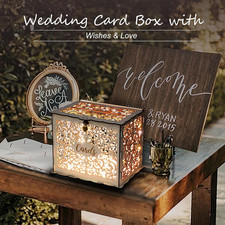 Wood Wedding Card Box with Lock and Key, Wedding Card Box for Reception,Wedding