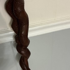 Wooden Snake Design Walking Stick Brown Hiking Cane Unisex Adults Rounded Top