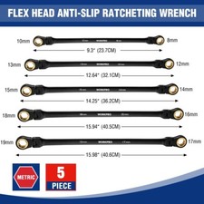 WORKPRO 5PCS Extra Long Ratcheting Wrench Set 8-19mm Combination Metric 72-Teeth