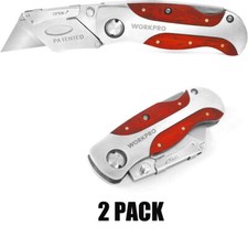 WORKPRO Quick-Change Utility Knife1PK/2PK/3PK Wood Grain Handle Back Lock w/Clip