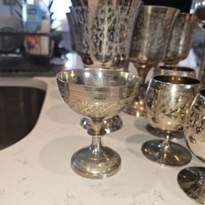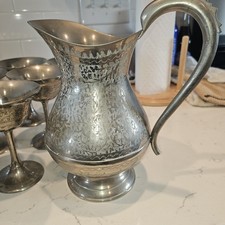 World Gift Z. Y. India Set of 10 Silver Plated Brass 6″ Goblets & Large Pitcher