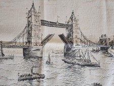 Woven tapestry depicting Tower Bridge and London landmarks
