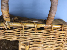 Woven Wicker Fisherman’s Creel Basket Fly Fishing Foraging Display Brown Antique