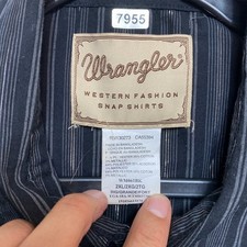Be the first to review “Wrangler Shirt Mens Size 2XL Black Metallic Stripe Button Up Snap On”