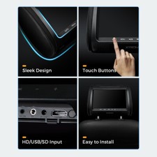 XTRONS 2Pcs 9″Car Headrest HD Active TV Monitor Pillow DVD Player HDMI FM USB/SD