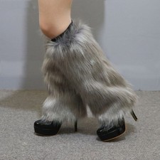 Y2K Furs Leg Warmer Winter Furry Long Boot Cuffs Fuzzy Shoes Cover Party Costume