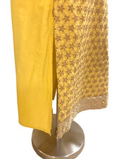 yellow EU 40 beading sequins elegant simple beauty knee length shirt side slits