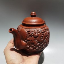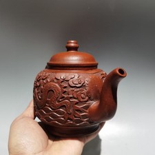 Yixing Zisha Clay Teapot Gongfu Cup Puer Tea Carved Intricate Dragon Regal