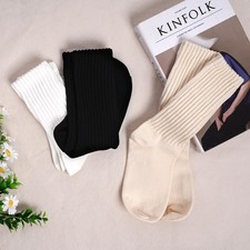 YKYUASD Women Crew Socks Slouch Scrunch Cotton One Size, White/Beige/Black