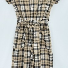 ZARA GIRLS PLAID Brown belted jumpsuit coversuit Size 10 Short Sleeve
