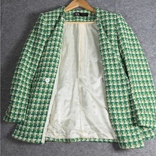 Zara Green Tweed Double Breasted Blazer Pearl Button Jacket 8541/122/131 Mens M