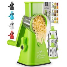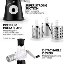 Zulay Rotary Cheese Grater – 3 Stainless Steel Drums, Suction Base